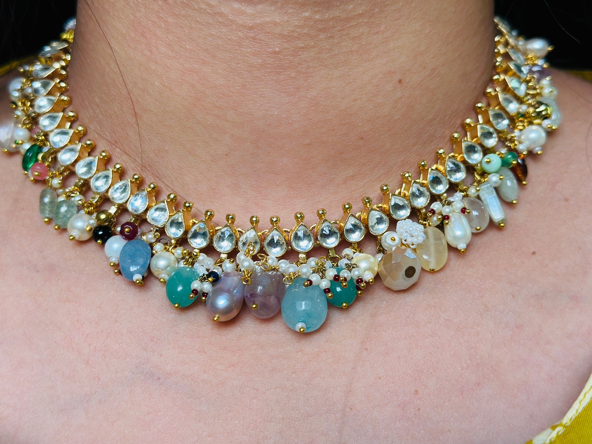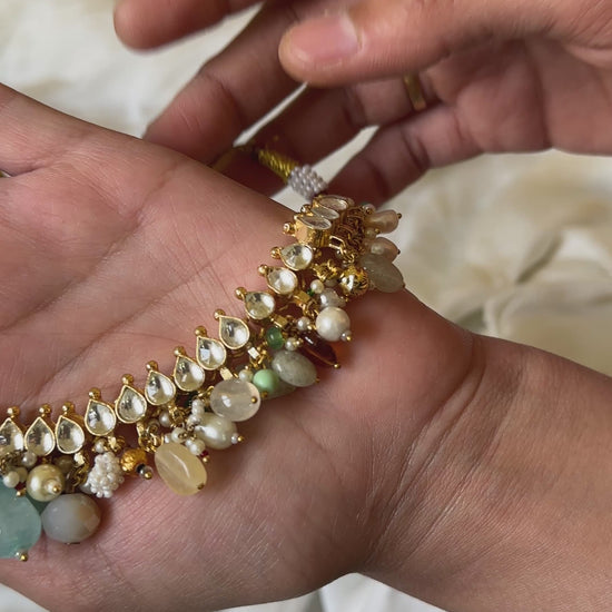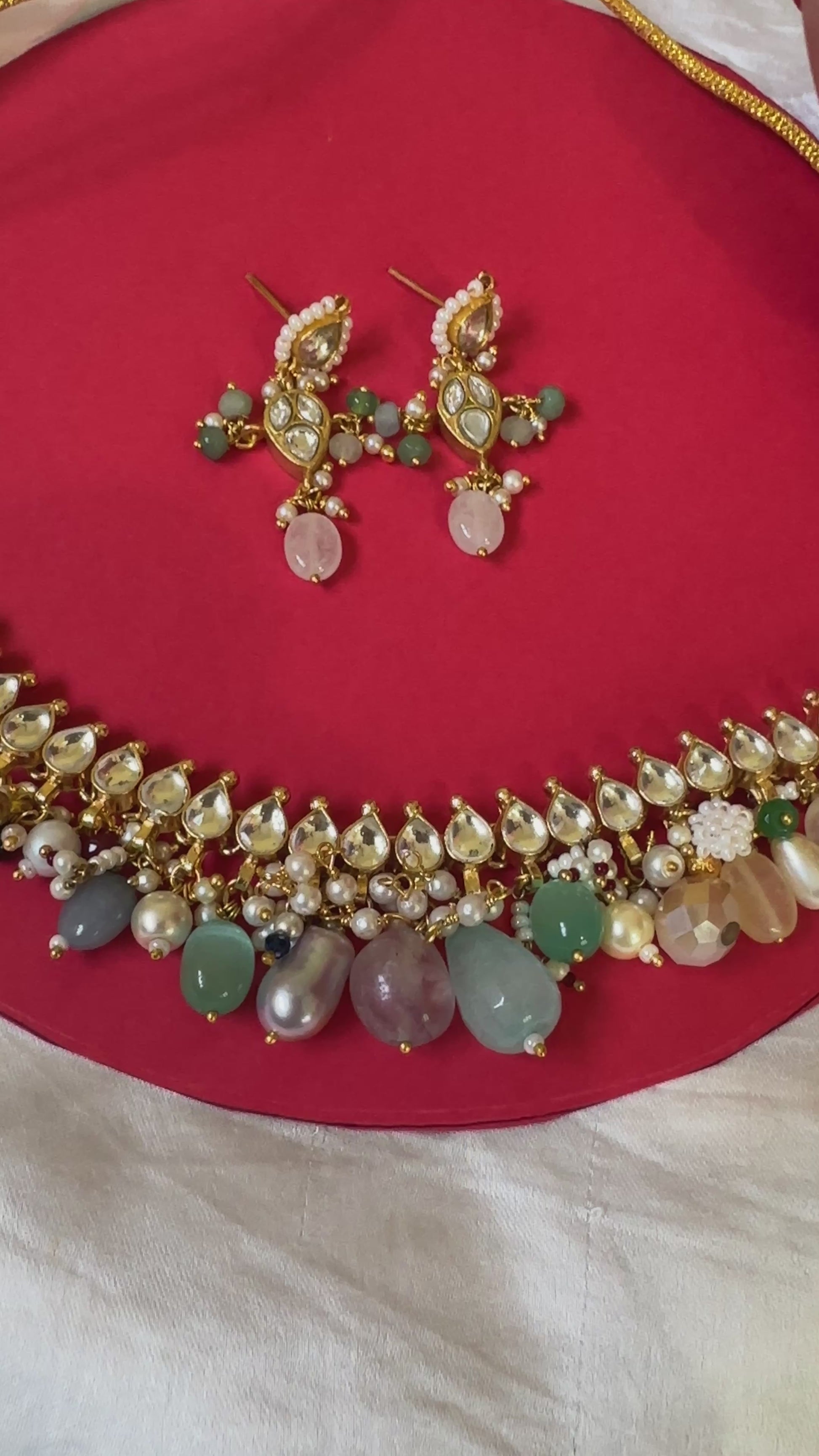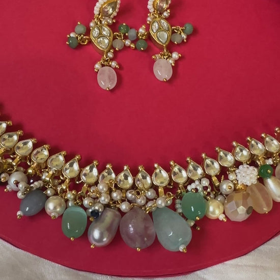* A stunning *fashion jewellery* set blending traditional Kundan with contemporary pastels.