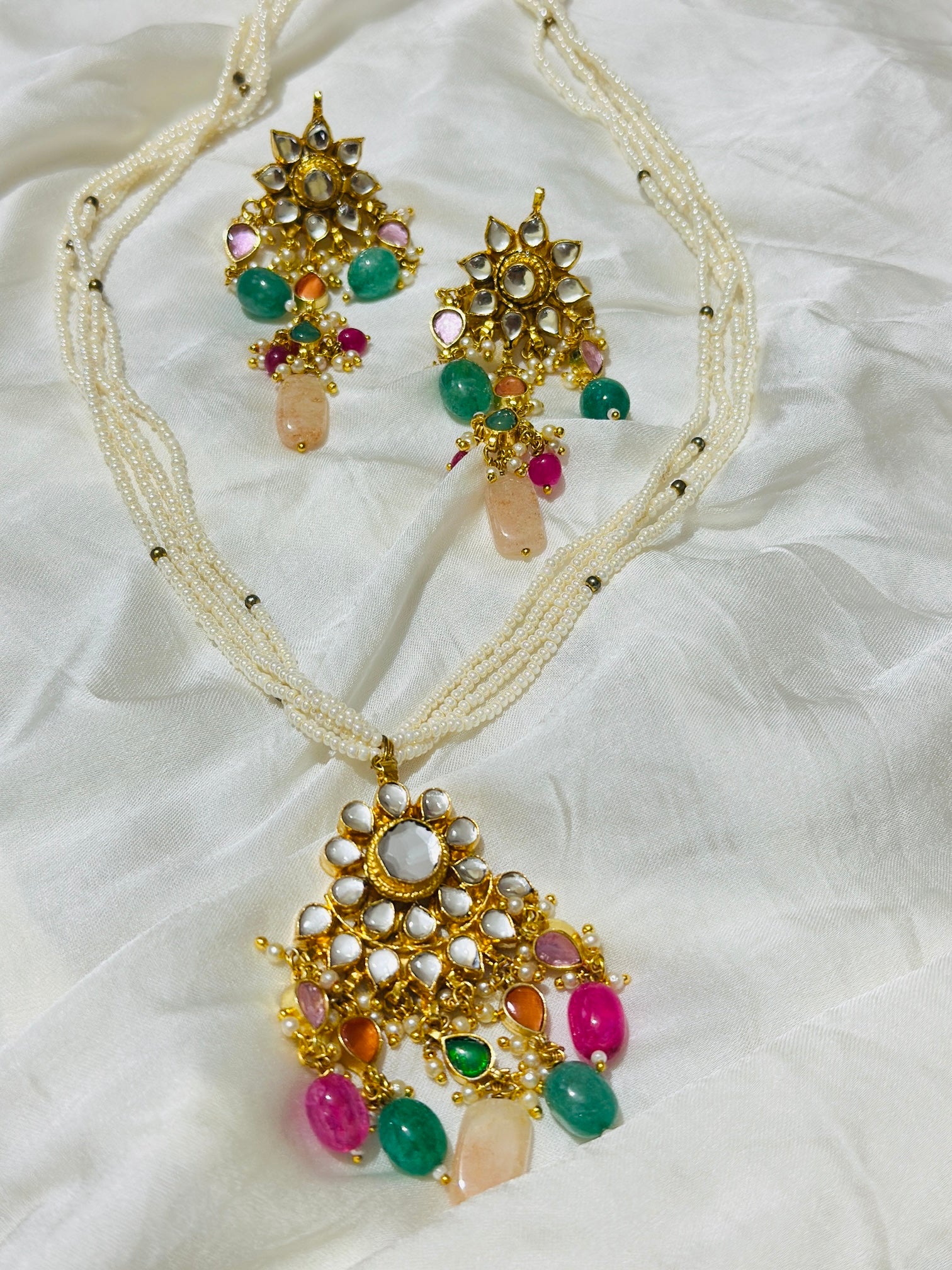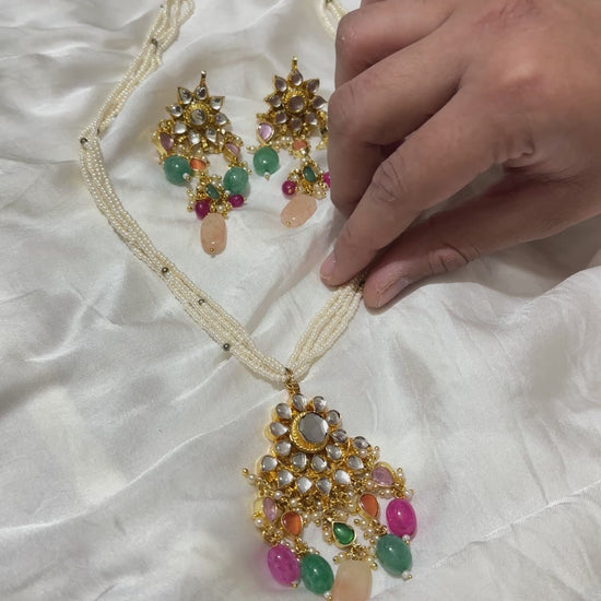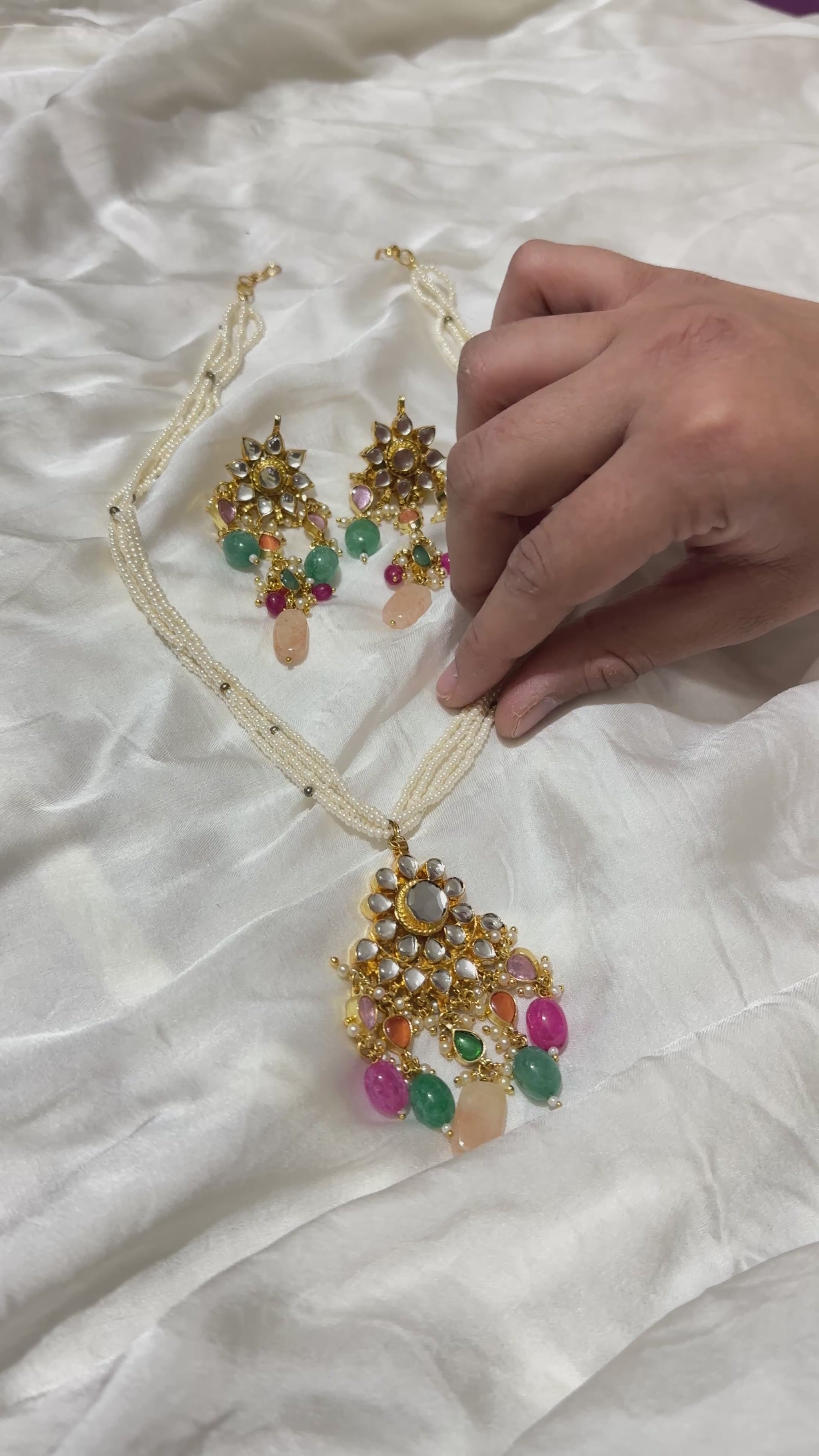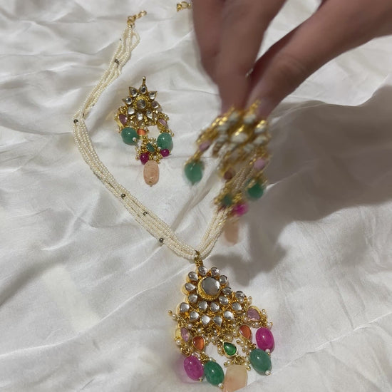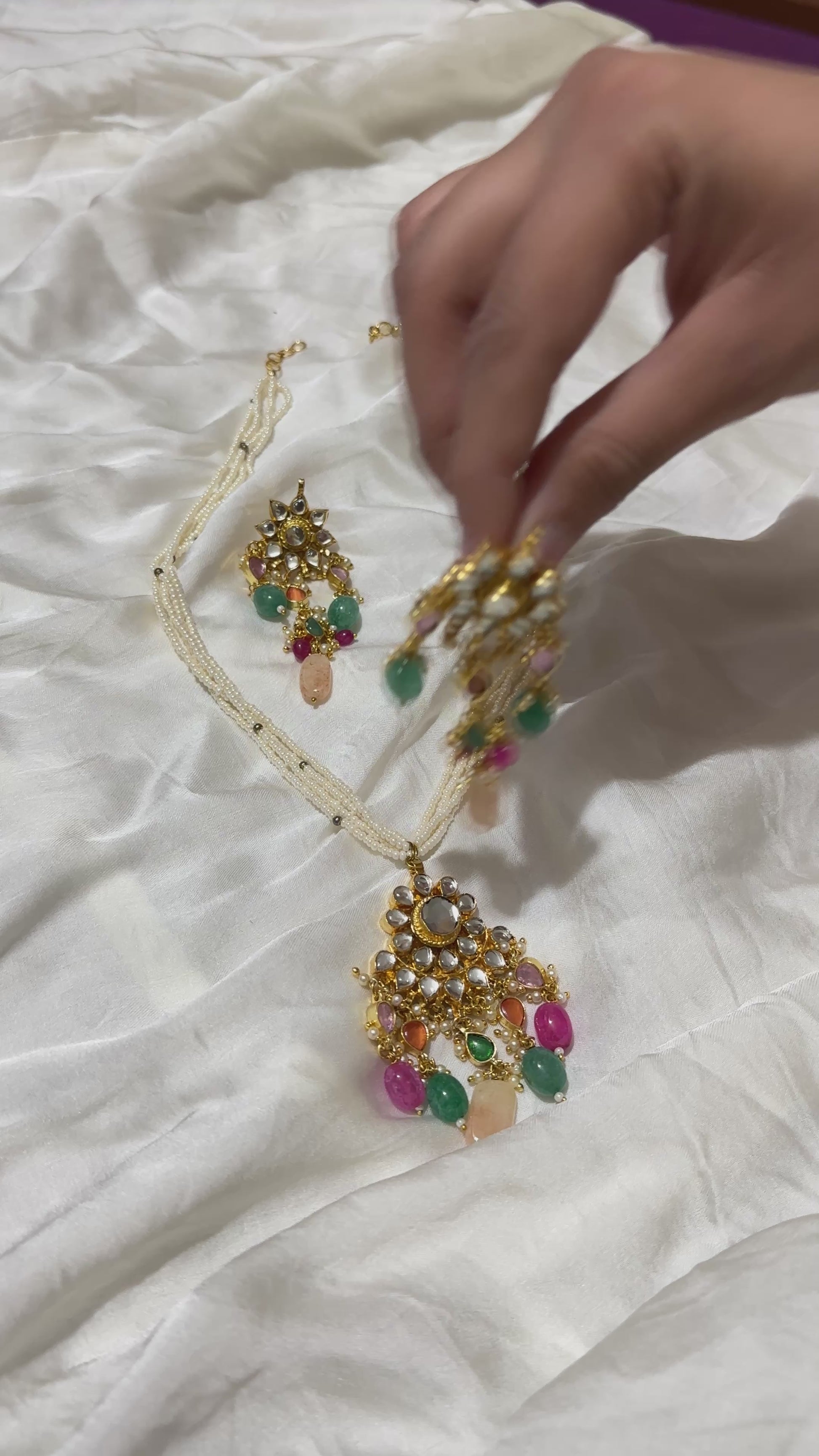 * A complete *fashion jewellery* set blending traditional Kundan with contemporary pastels.