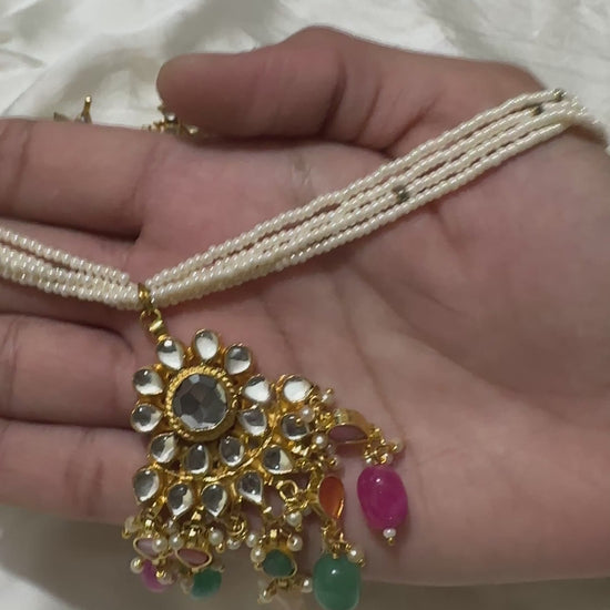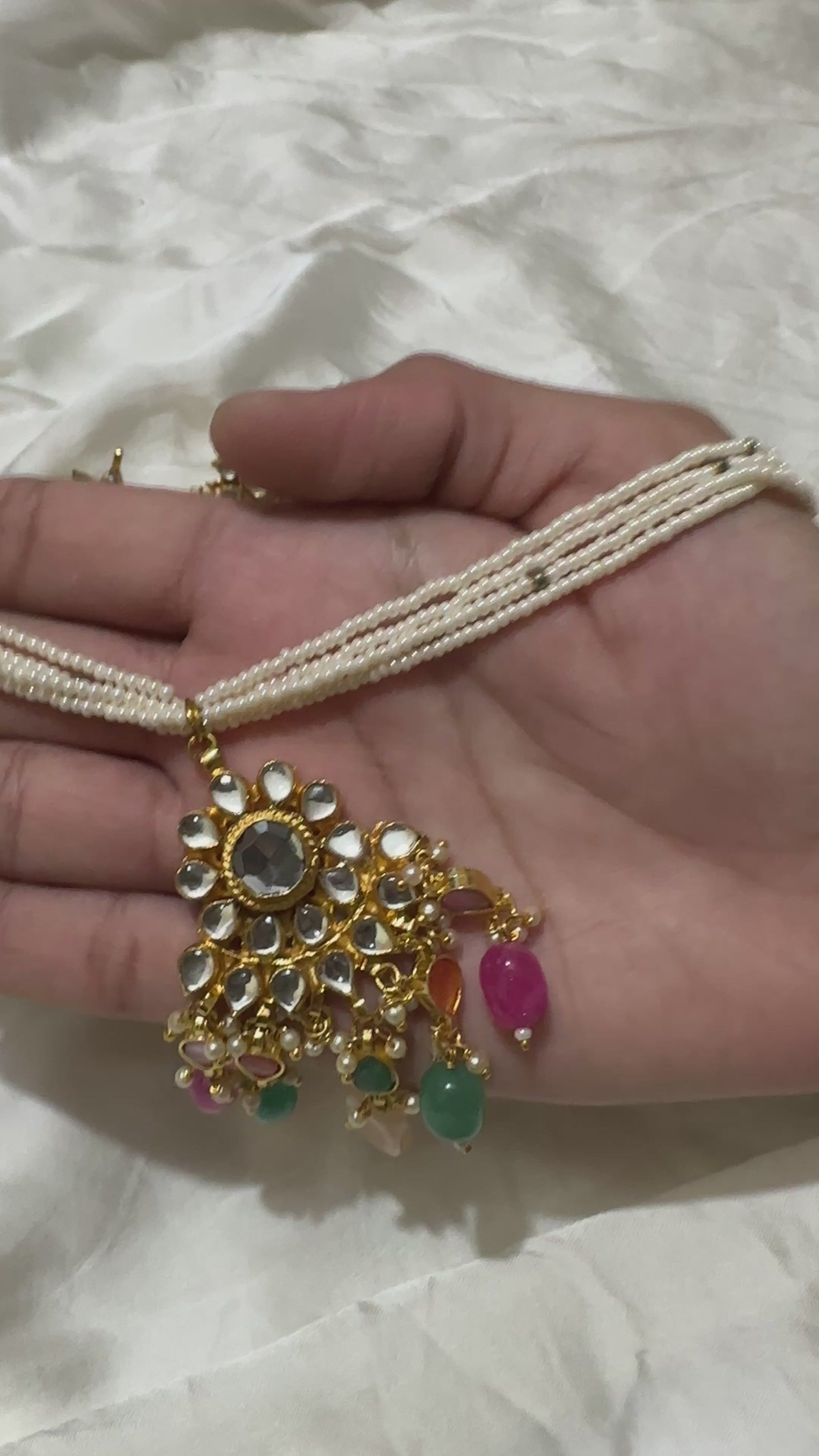 * Adorned with brilliant Kundan-style stones and vibrant, multi-hued pastel bead drops.